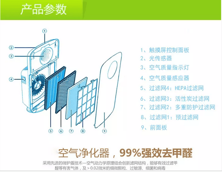 GJY-888空气净化器采用先进的微护盾技术—空气动力学原理结合创新滤网结构,能够有效过滤甲醛等有害气体,及>0.02微米的细微颗粒、过滤源、细菌和病毒。